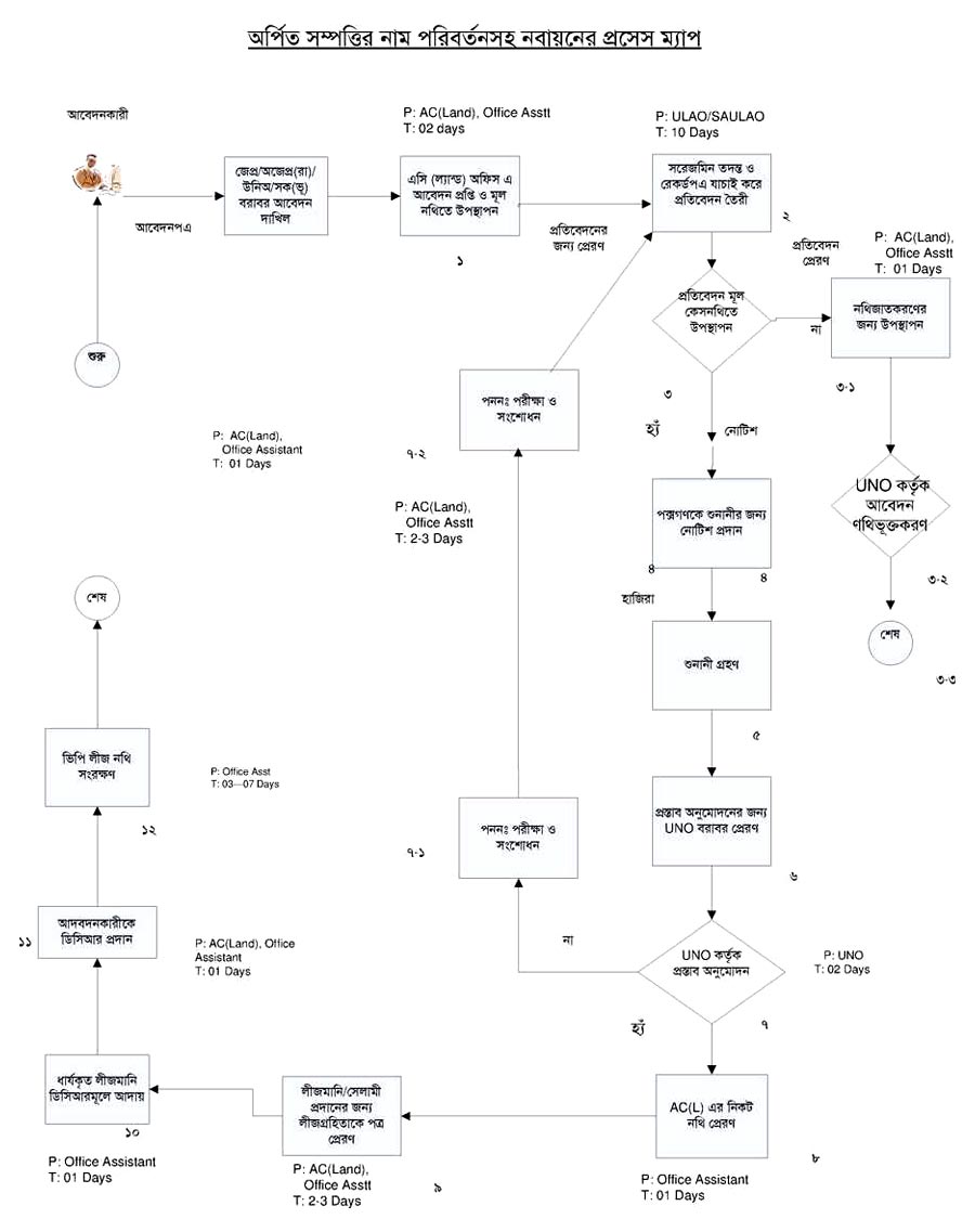 অর্পিত সম্পত্তির নাম পরিবর্তন সহ নবায়নের প্রসেস ম্যাপ